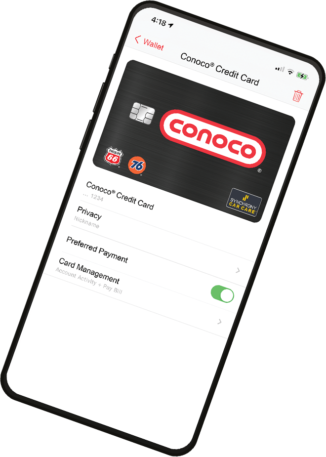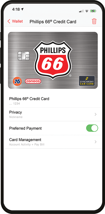 The Phillips 66®, Conoco®, 76® and Phillips 66® Aviation Credit Cards are issued by Synchrony Bank. Phillips 66®, Conoco®, 76® and Fuel Forward® are trademarks owned by Phillips 66 Company.